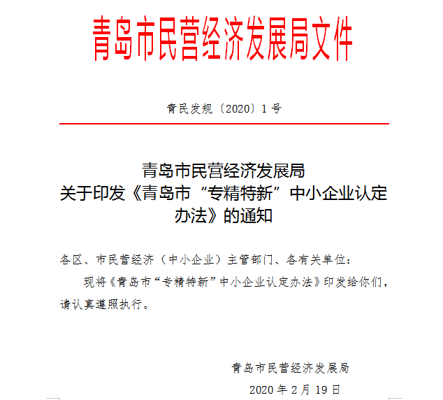 此次獲得青島市“專精特新”企業(yè)榮譽稱號是對我司事業(yè)發(fā)展的極大肯定。也是促進我司繼續(xù)擴大規(guī)模,不斷精進生產(chǎn)的巨大動力。